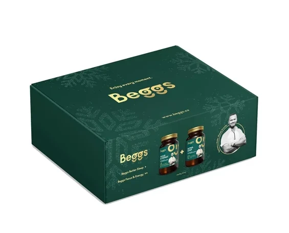 Dárkový set Beggs vznikl ve spolupráci s MUDr. Markem Dvořákem a spojuje dva prémiové doplňky – Beggs Better Sleep a Beggs Focus & Energy. Každý z nich byl pečlivě navržen s důrazem na kvalitu, funkčnost a čisté složení, aby doplnil každodenní rutinu o podporu těla i mysli v různých fázích dne. Oba produkty jsou 100% veganské, bez lepku, laktózy, sóji a syntetických aditiv. Byly vyvinuty na základě odborné spolupráce s lékařem a vyrobeny v České republice s důrazem na laboratorně ověřenou kvalitu.