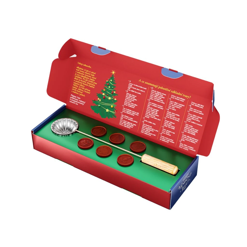 Sada obsahuje 6 voskových mincí a odlévací naběračku.