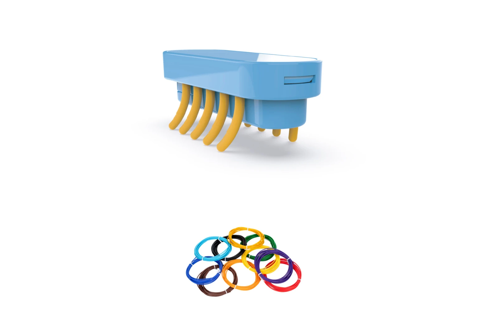 Sada obsahuje chodící zařízení na baterie, 10 šablon pro tvorbu zvířátek, 17 barevných náplní (2 m), podložku pro pohodlnou práci a baterii 1× AG13 (LR44). Přepínač ON/OFF se nachází přímo na zařízení. 3D pero není součástí balení. Český obal zajišťuje snadnou orientaci i pochopení produktu.