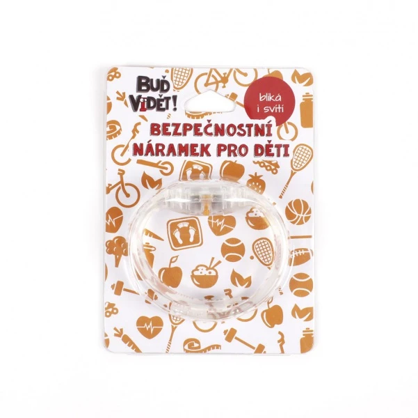 Myslete na bezpečnost svých nejmenších. Bezpečnostní náramek na ruku ochrání vaše děti na cestě do školy i domů. Po zapnutí svítí i bliká.Výrobek je na knoflíkovou baterii,která je součástí výrobku. Náramek je nastavitelný