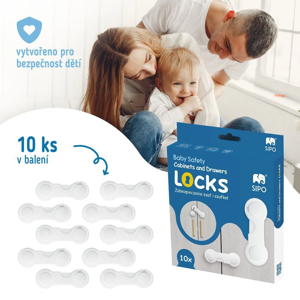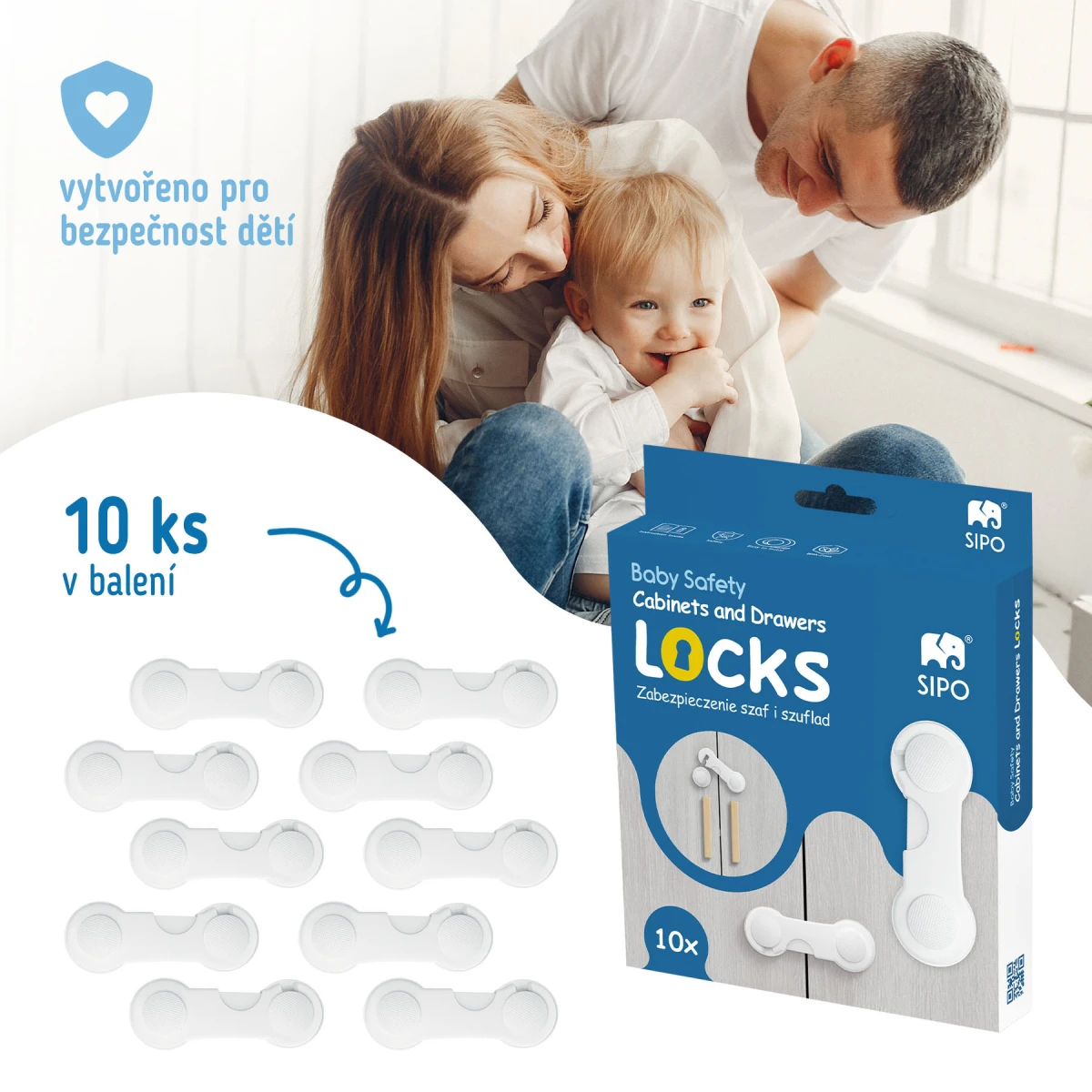 Bezpečnostní zámky na skříňky a zásuvky sada 10 ks Sipo