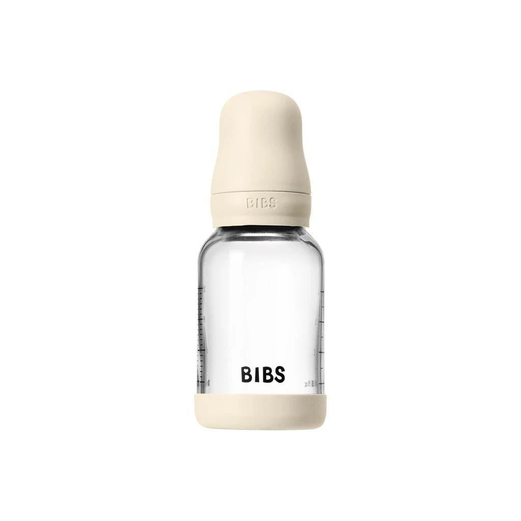 Antikoliková skleněná láhev s kaučukovým dudlíkem 120 ml Bibs Ivory