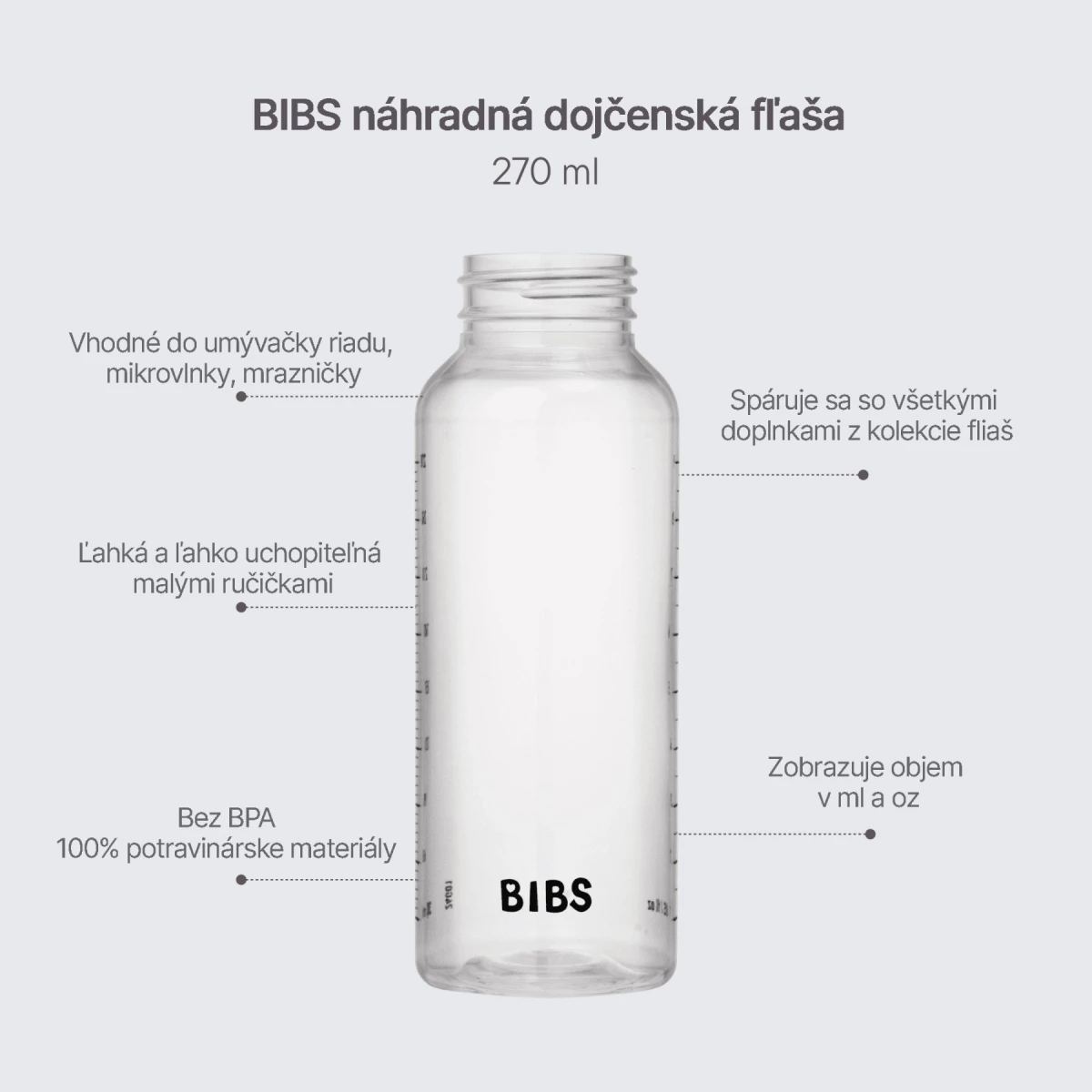 Samostatná plastová láhev 270 ml bez dudlíku, uzávěrů a doplňků.