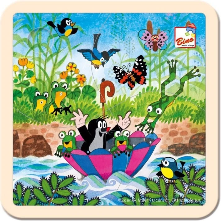 Dřevěné dětské puzzle (skládačka) s Krtečkem pro nejmenší - se čtyřmi dílky pro úplně první skládání. Dílky se mohou umisťovat na dřevěnou desku s rámečkem a předlohou nebo lze obrázek skládat bez rámečku. V jednom z dílků je otvor pro snadné vyjmutí dílků z rámečku. Doporučený věk 10+ měsíců. Všechny hračky značky BINO mají zdravotní atest a splňují tak všechny normy EU. BINO Europe je nadnárodní firma vyrábějící zejména dřevěné hračky pro děti. Výrobky ze dřeva pod obchodní značkou BINO jsou vyráběny v České republice v Klatovech (dříve pod názvem Olymp Klatovy) a jsou vyváženy do celého světa. Hlavními motivy dřevěných puzzle a vkládaček BINO jsou obrázky z dětských pohádek a tolik oblíbených klasických večerníčků.