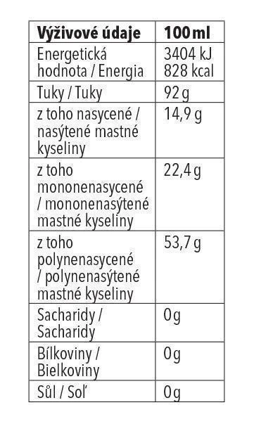 Díky vysokému obsahu kyseliny linolové přispívá tento za studena lisovaný olej k udržení normální hladiny cholesterolu v krvi. Obsahuje přibližně 1 % esenciálních olejů, jejichž jemně hřejivá, kořeněná vůně povznáší náladu. V péči o pokožku ji výtečně hydratuje a je vhodný k uvolňujícím masážím.