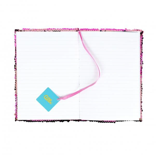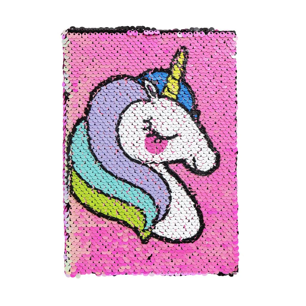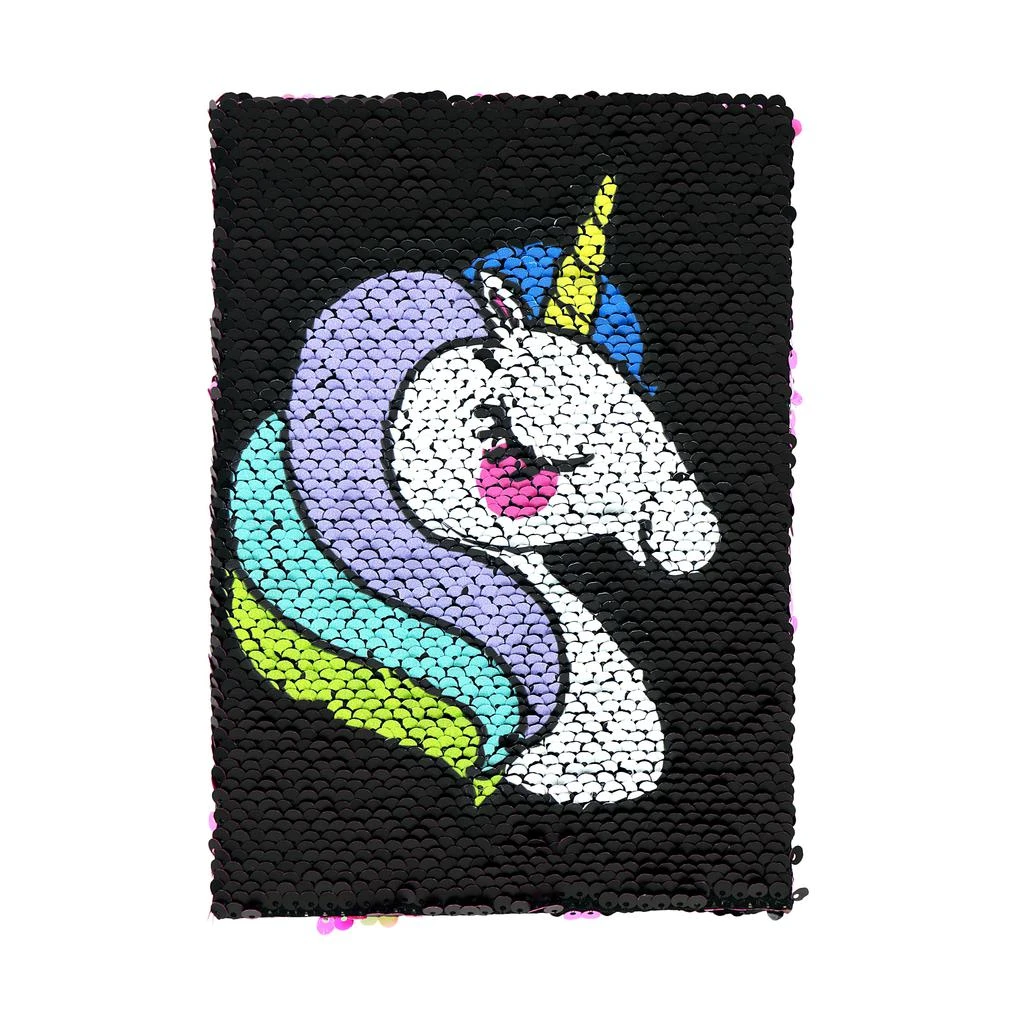 Linkovaný blok, jedna strana je růžová, po přejetí flitrů se změní na černou s jednorožcem.