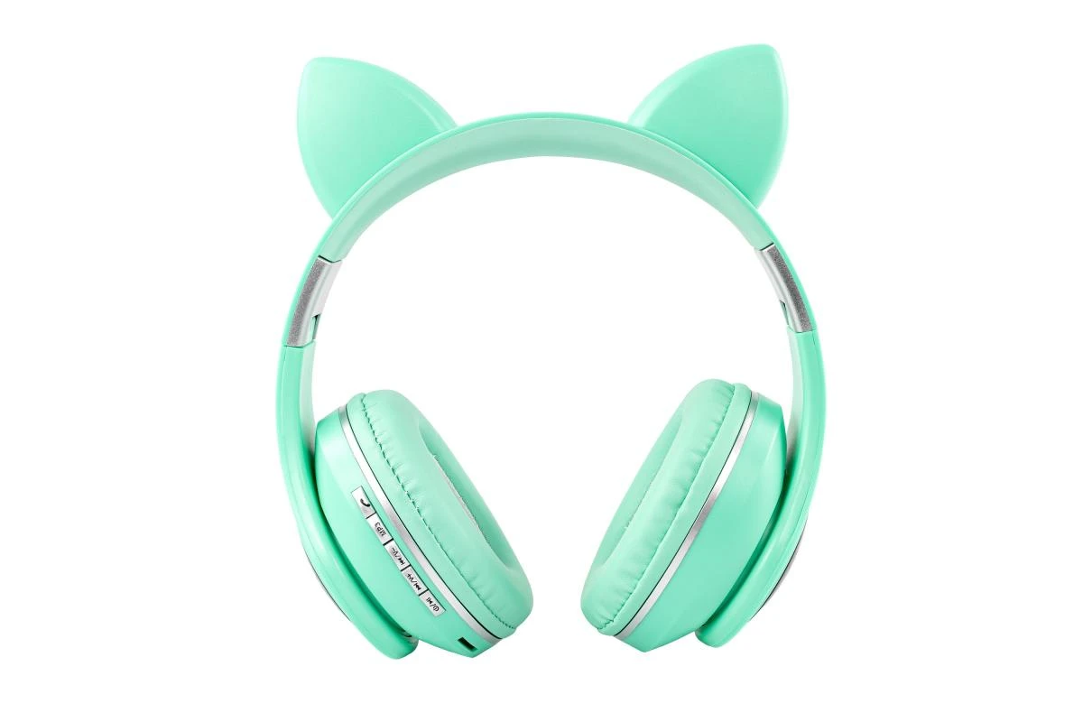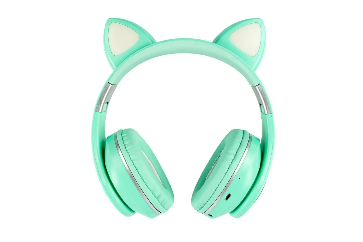 Bluetooth bezdrátová dětská sluchátka s ouškama zelená