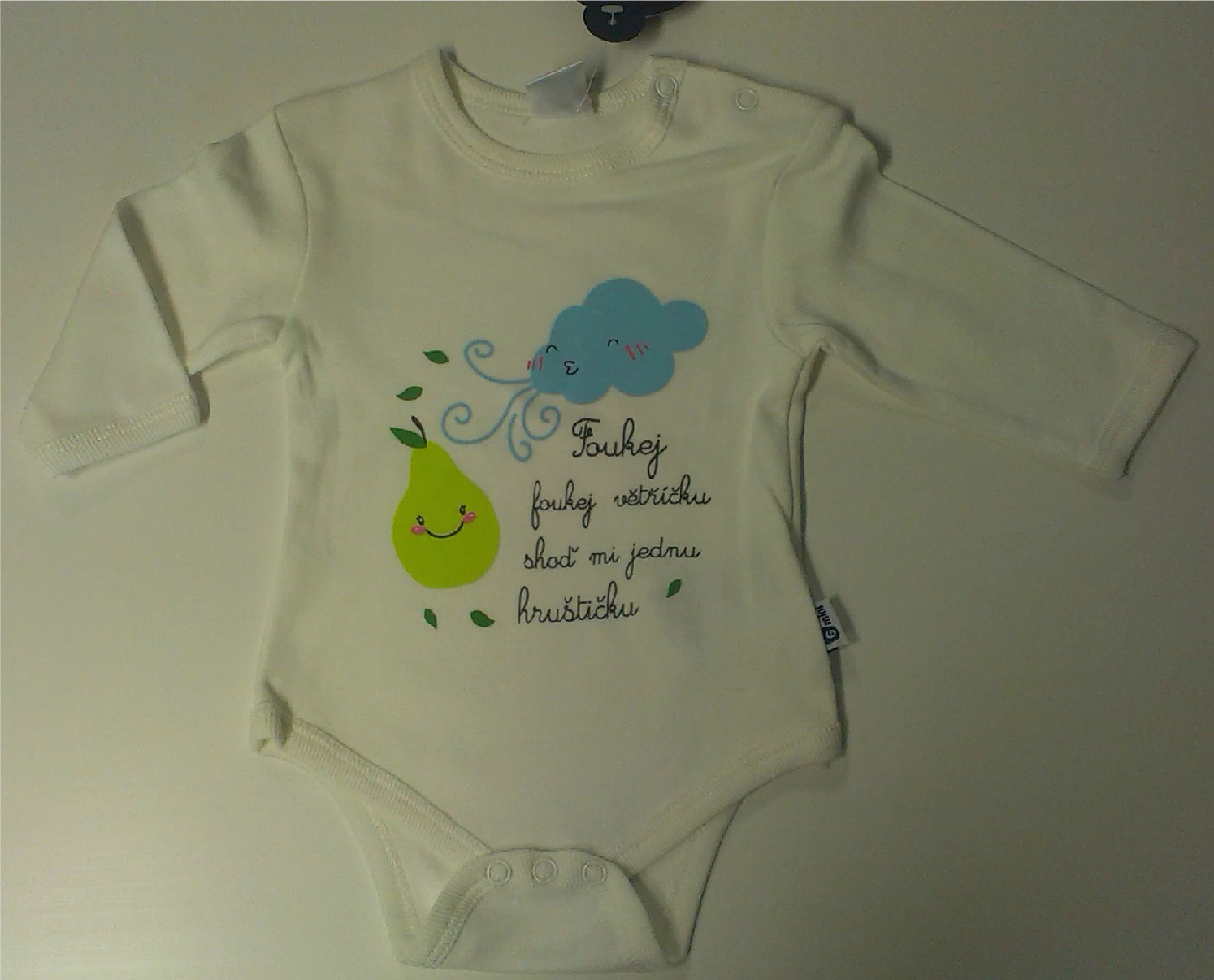 Body dl. rukáv smetanové s nápisem FOUKEJ FOUKEJ VĚTŘÍČKU... vel. 86