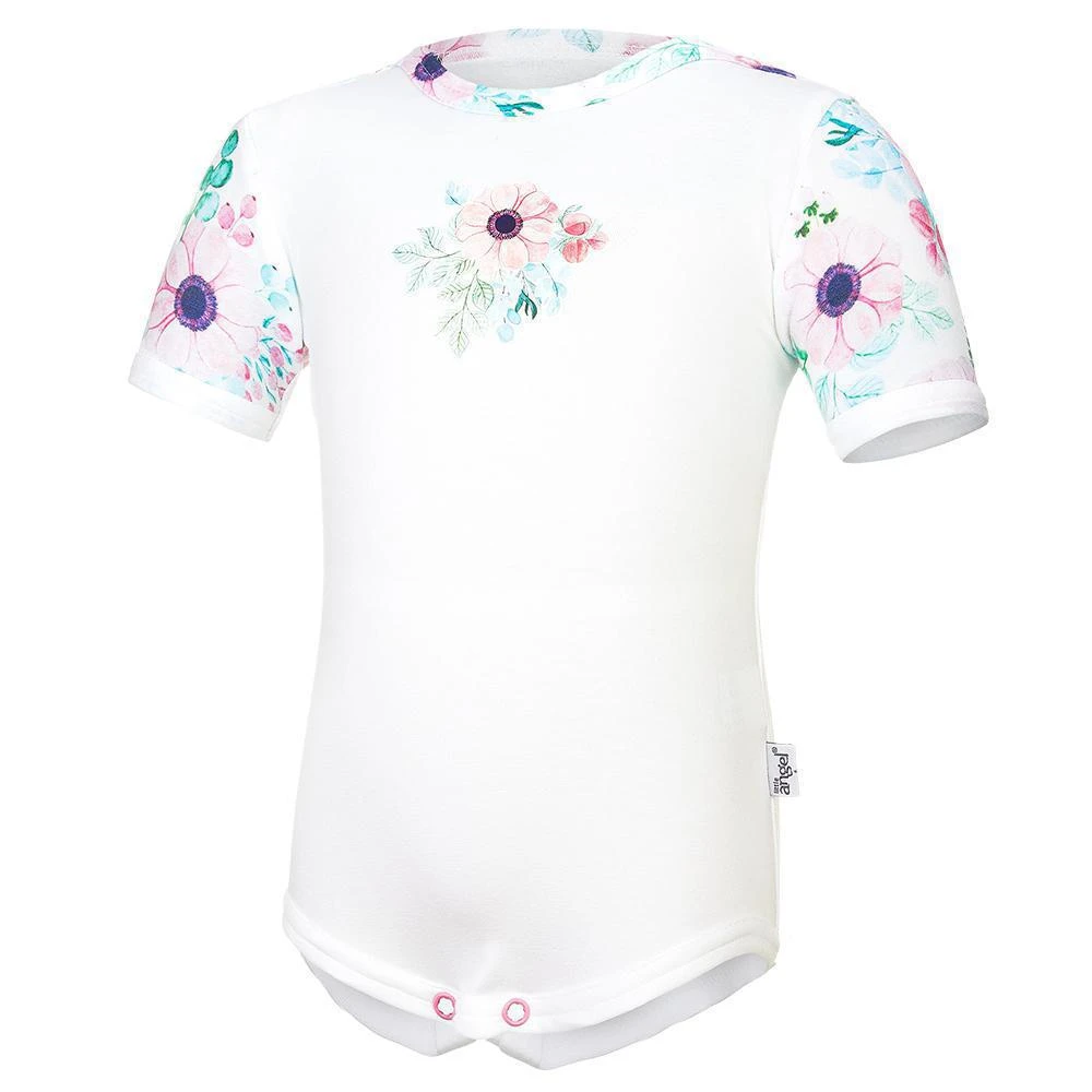 Body s krátkým rukávem z tenkého bavlněného úpletu s materiálem Outlast® je jemné, pružné a velmi příjemné na dotek. Díky pružnosti krásně přiléhá na tělíčko a nikde neodstává. U krčku se zapíná na patent a usnadňuje tak oblékání. Outlast® vytváří ideální teplotní podmínky a udržuje stálou teplotu mezi pokožkou a tkaninou. Když se teplota zvýší, ať už díky rychlému pohybu či zvýšením okolní teploty, Outlast® teplo odebere dřív, než se pokožka začne potit. V případě ochlazení, Outlast® tělu naopak teplotu dodá. Materiál je vhodný i pro děti s problematickou pokožkou, ať už se jedná o alergiky, či děti s atopickým ekzémem. Nevyvolává alergické reakce a snižuje riziko vzniku potniček. Bodýčko je vhodné jak do horkého, tak i do proměnlivého počasí.