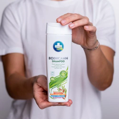 Přírodní konopný šampon pro každodenní péči o vlasy i vlasovou pokožku s extra šetrnými mycími látkami vhodný i pro citlivou pokožku se sklonem k ekzémům a kožním projevům lupénky. Bylinné výtažky spolu s konopným olejem přispívají ke zklidnění a regeneraci pokožky, vlasy udržují zdravé a lesklé. Panthenol má příznivý vliv na kvalitu a růst vlasů, zlepšuje jejich vzhled. Bodycann shampoo je vhodný pro citlivou pokožku.