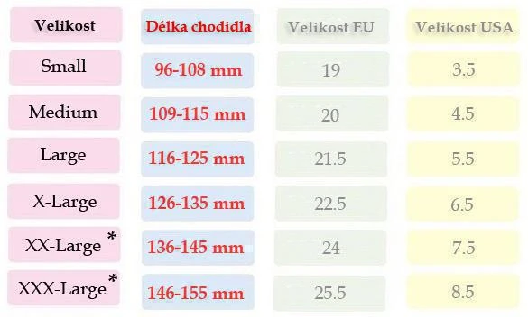 Je nutné změřit délku chodidla (ve stoje!) a ke změřené délce navíc připočítat takzvaný nadměrek v délce cca 5 milimetrů.