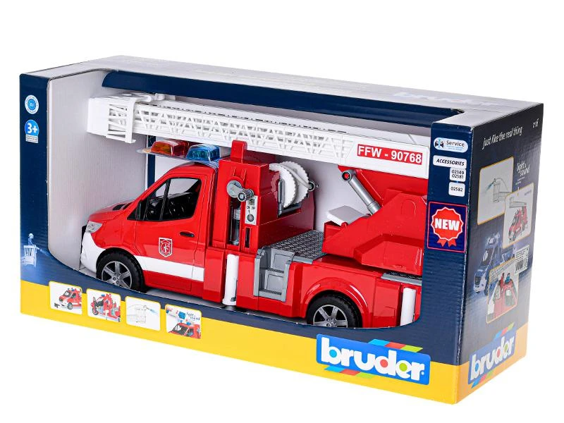 Bruder hasičské auto MB Sprinter se žebříkem stříkající vodu se světlem a zvukem