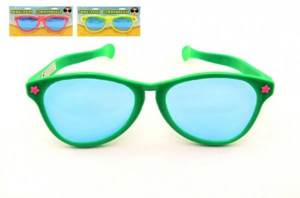 Party brýle jsou ve čtyřech barvách – zelené, oranžové, purpurové a růžovo-červené.