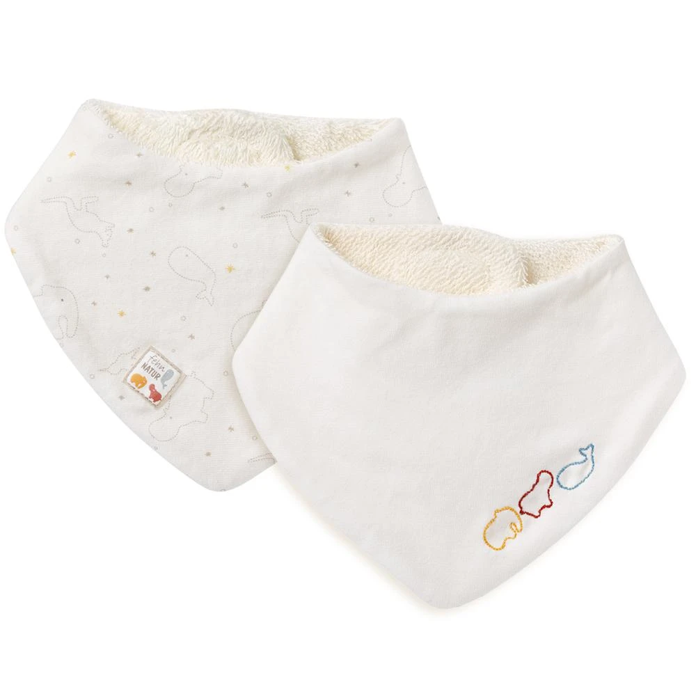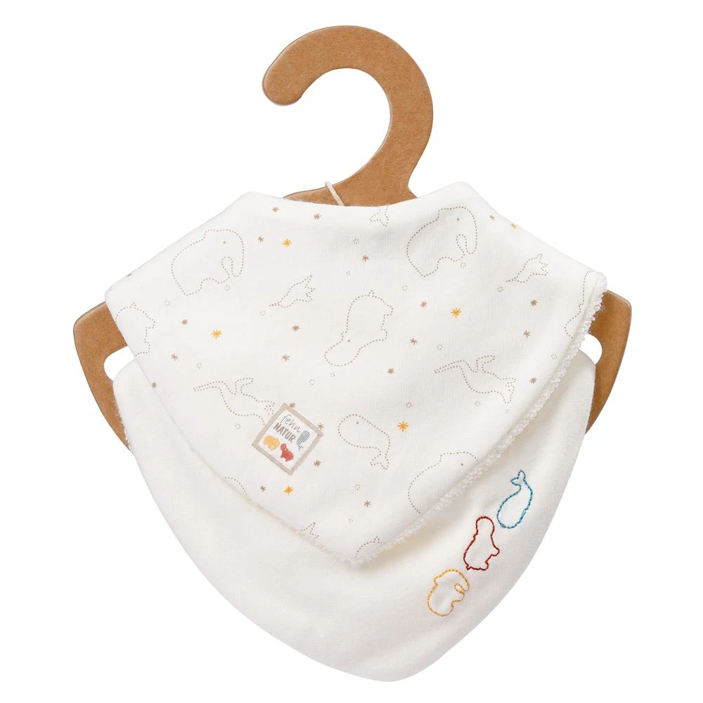 • Jeden šátek je s měkkým vzorem, druhý s roztomilou výšivkou. Oba mají froté zadní stranu