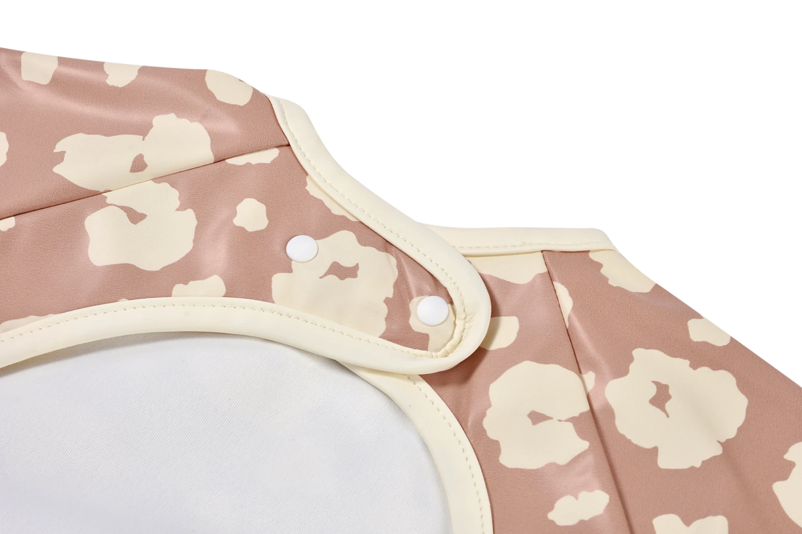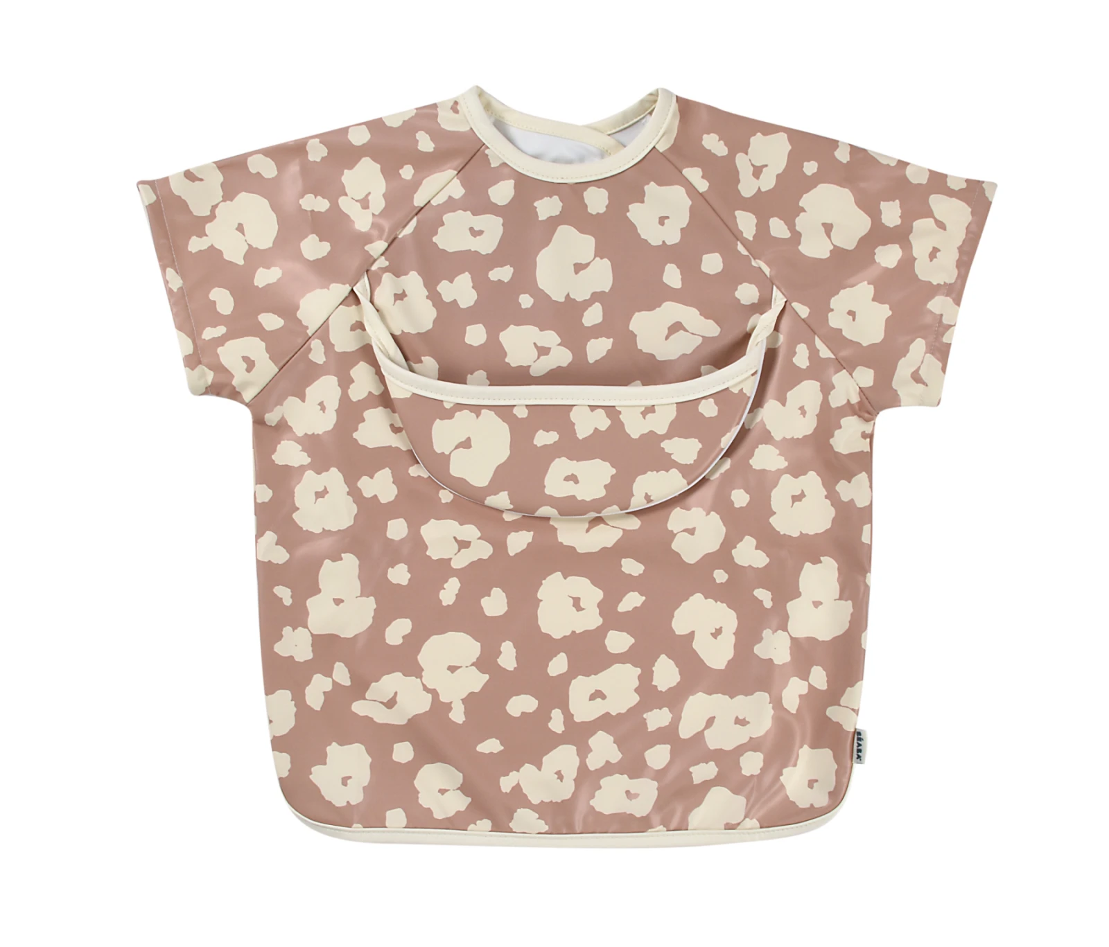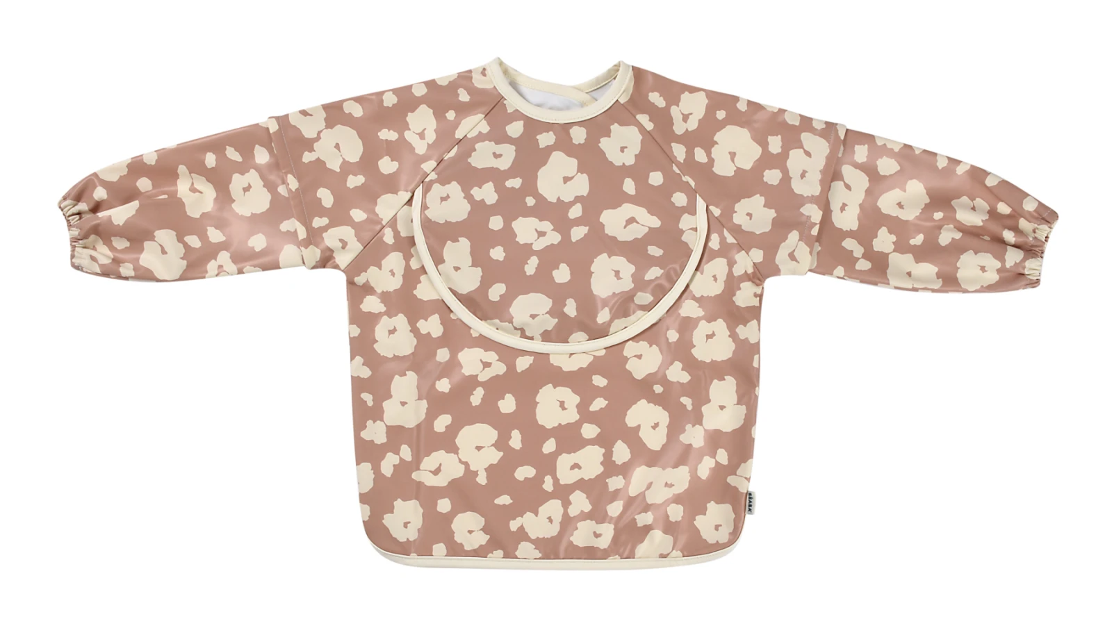 Nastavitelné zapínání na druky za krkem umožňuje snadné oblékání i přizpůsobení bryndáku velikosti dítěte. Elastické zakončení rukávů poskytuje pohodlí při nošení.