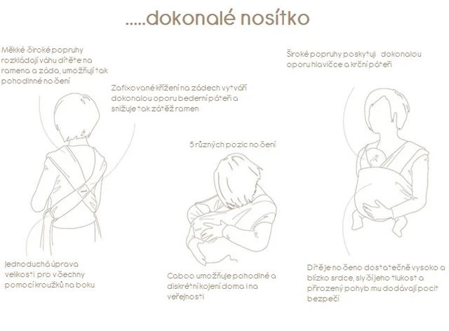 - je vhodné pro nošení i nejmenších miminek a nedonošených miminek. Není to klasické měkké látkové nosítko, je to něco mezi šátkem a nosítkem s přezkami.