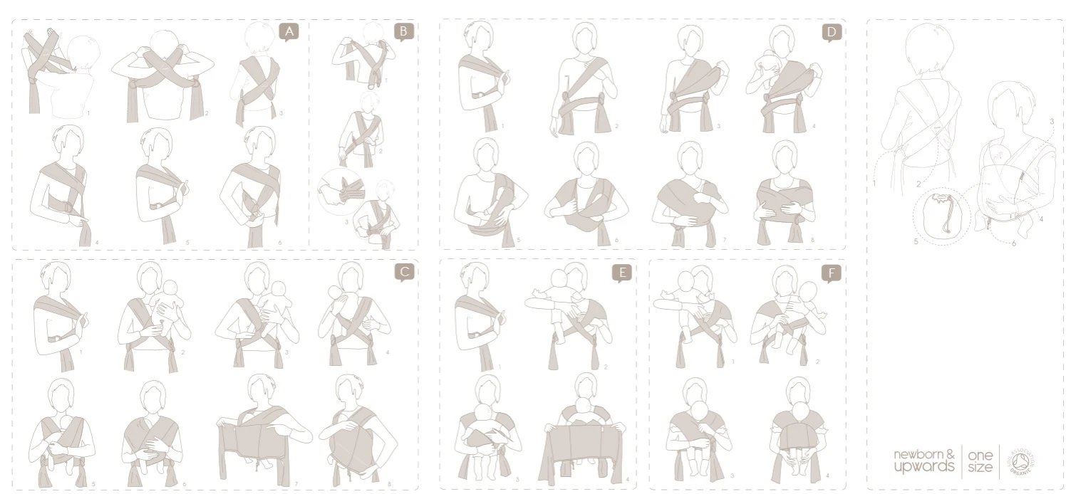 součástí Caboo nosítka je návod v českém jazyce a podrobný obrázkový manuál