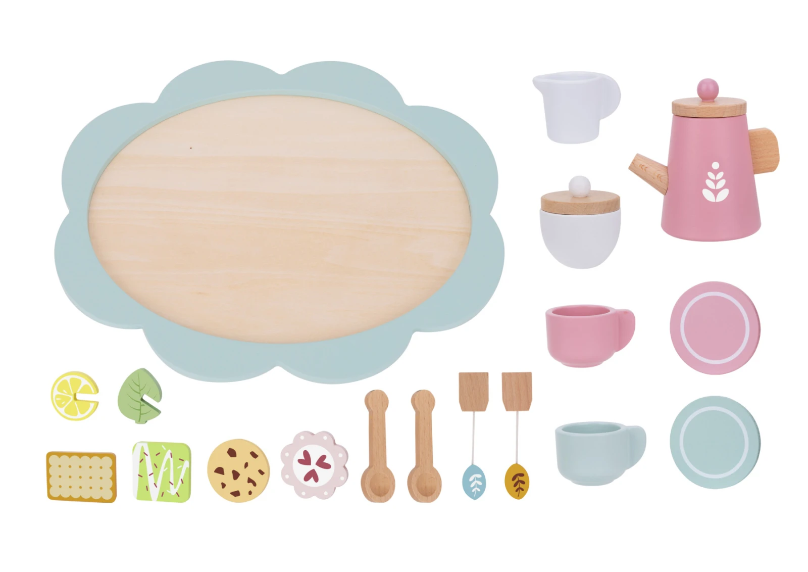 Náš dřevěný čajový servis v krásných pastelových barvách je navržen tak, aby dětem pomáhal zlepšovat sociální dovednosti a komunikaci prostřednictvím dospělých rolových her. Zapojením se do těchto hravých aktivit se děti stávají kreativními a rozvíjejí pozitivní přístup k přípravě a podávání jídla a nápojů. Vyrobené z pevného, dobře zpracovaného dřeva pocházejícího z udržitelných lesů a natřené netoxickými barvami, dřevěné hračky Tooky Toy jsou bezpečné a odolné. Tato sada je skvělým dárkem pro děti od 3 let.