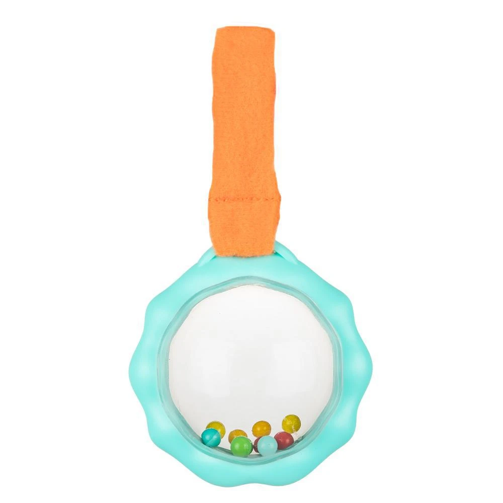 2 hračky připevněné k dece povzbuzují a prodlužují čas strávený vleže na bříšku.Podporuje rozvoj koordinace oko-ruka, sluchově motorické koordinace a jemné motoriky.Pohodlné uchycení hrazdičky pomocí klipů.