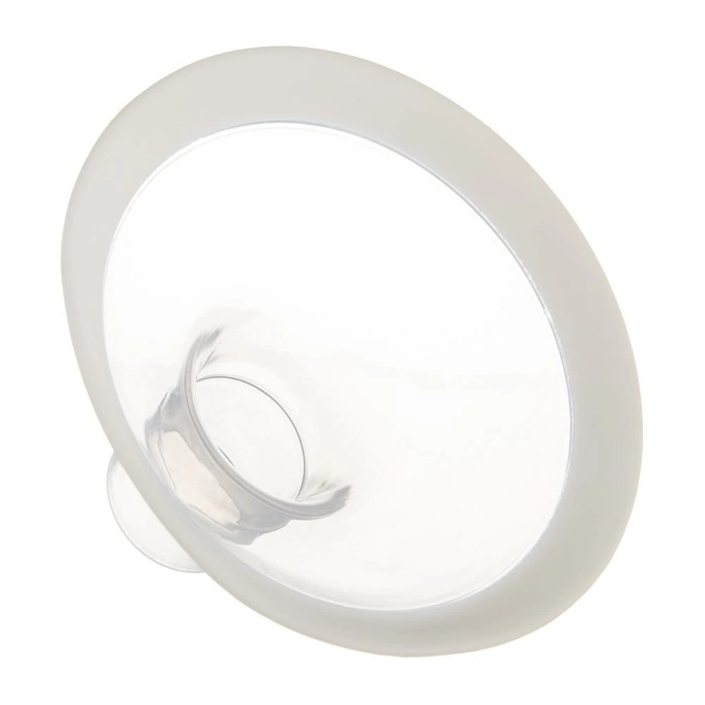 - Měký a flexibilní okraj trychtýře se přizpůsobí různým tvarům prsu a zabraňuje tak úniku odsátého mateřského mléka po stranách.