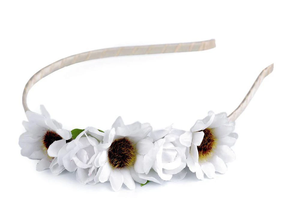 Čelenka do vlasů s květy bílá