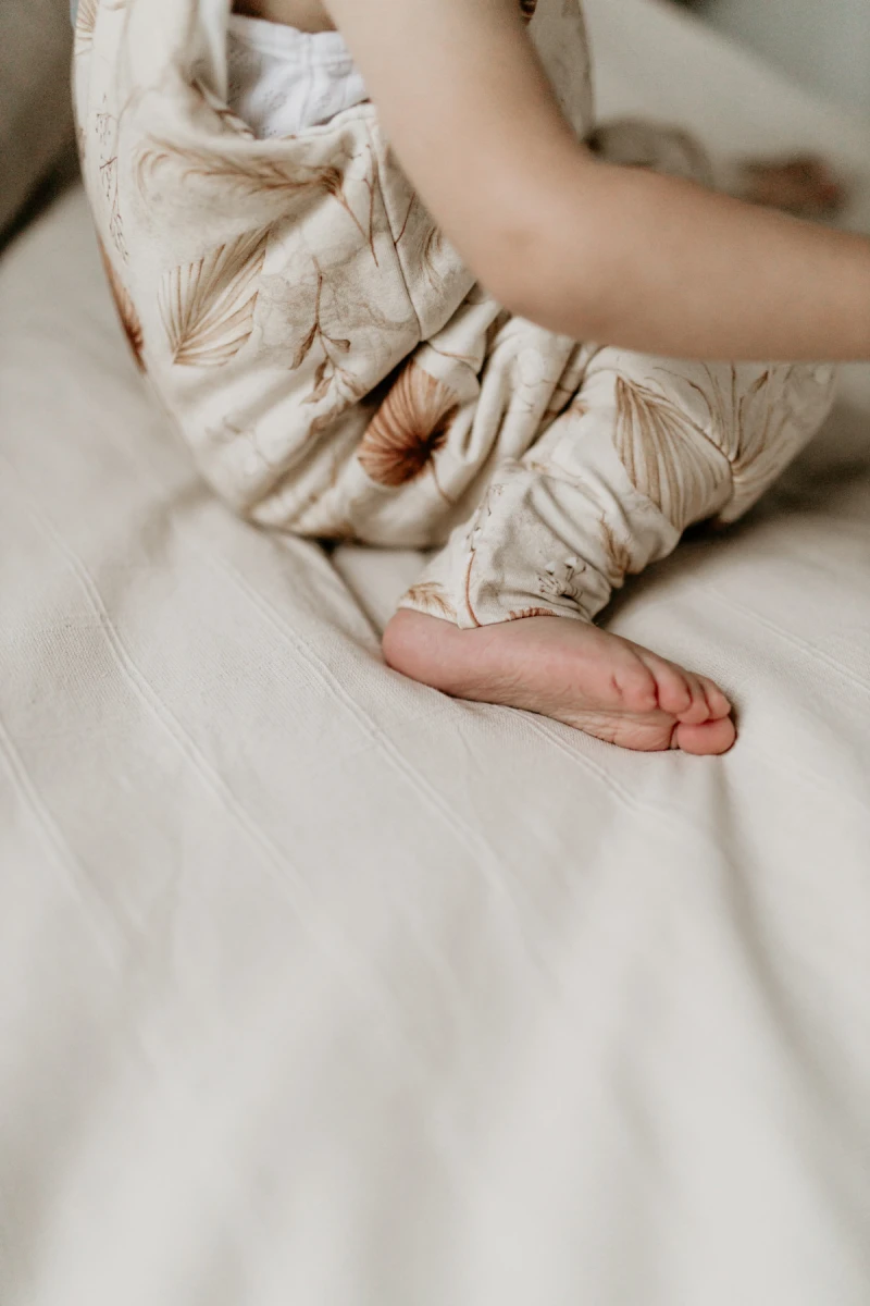 Nohavice mají zakončení stejné, jako u některých dětských bodyček a overalů - okraji nohavic tak můžete jednoduše překrýt nožky dítěte a zajistit jim ještě větší teplo. Nohavičky můžete překrýt až v průběhu spánku podle toho, zda je dítěti teplo nebo zima.