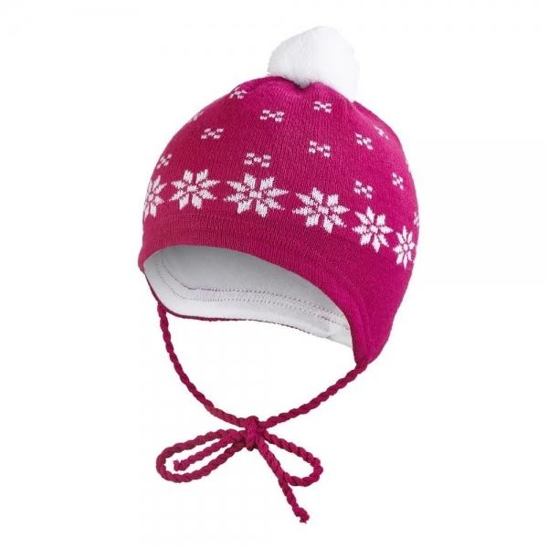 Čepice PLETENÁ zavazovací NORSKÝ VZOR Outlast® BAMBULE tm.růžová