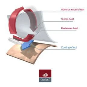 Tento materiál je velmi oblíbený především pro svojí jemnost, ale také díky svým termoregulačním vlastnostem. Dokáže totiž efektivně pracovat s tělesnou teplotou - při zahřátí umí nahromaděné teplo odvést od těla a v okamžiku ochlazení teplo opět uvolnit a zahřát. Děti se tak mohou bezstarostně věnovat veškerým aktivitám a Outlast® se postará o jejich teplotní pohodu.