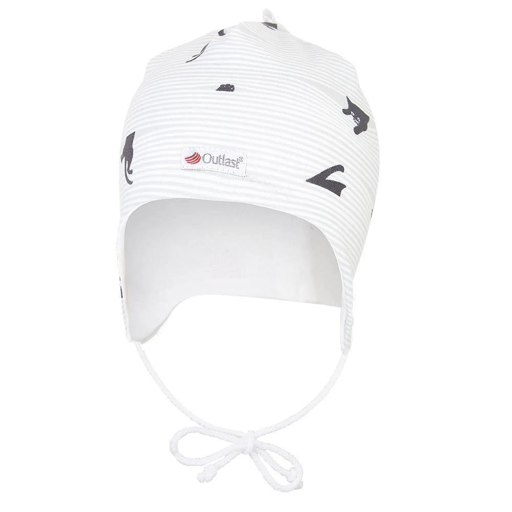 Čepice podšitá zavazovací BIO Outlast® - bílá-černá kočka/bílá