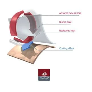 Tento materiál dokáže regulovat tělesnou teplotu, nadbytečné teplo odvede, uschová a v případě ochlazení těla zahřeje. Díky těmto jedinečným vlastnostem materiál Outlast® poskytuje teplotní komfort po celou dobu nošení.