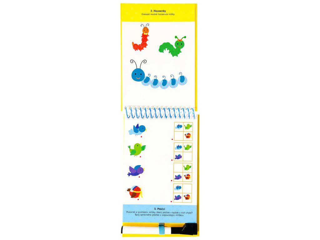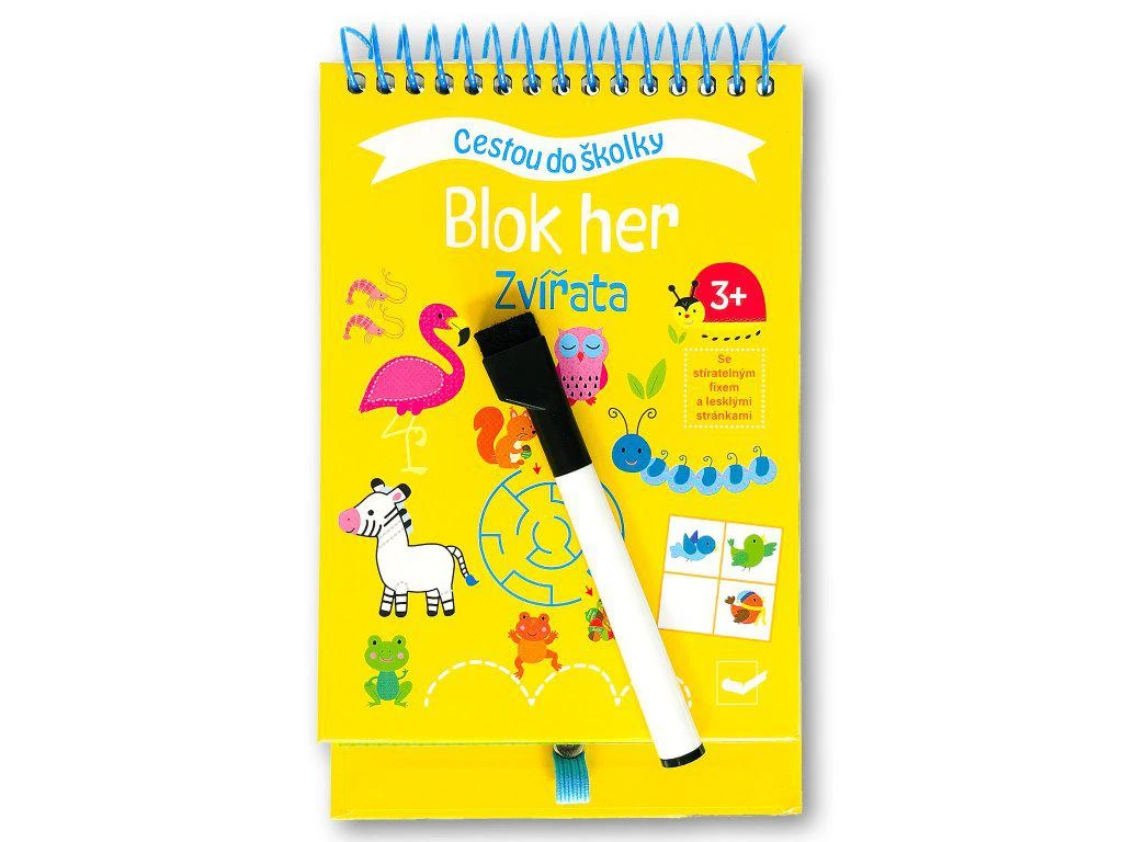 S tímto blokem si děti užijí kreslení, řešení logických řad a procházení bludišť a vyřeší mnoho dalších aktivit. Děti budou překreslovat obrázky, obtahovat linie, spojovat body s čísly či procházet bludištěm. Díky stránkám s lesklým povrchem a stíratelnému fixu s praktickou houbičkou, který je k bloku přiložen, můžou děti všechny úlohy řešit pořád dokola! Řada Cestou do školky představuje dětem hravým způsobem úlohy, které si mohou užít třeba i během krátké chvilky, jako je cesta do školky. Úkoly uzpůsobené věku postupně malé předškoláky rozvíjejí a zabaví.