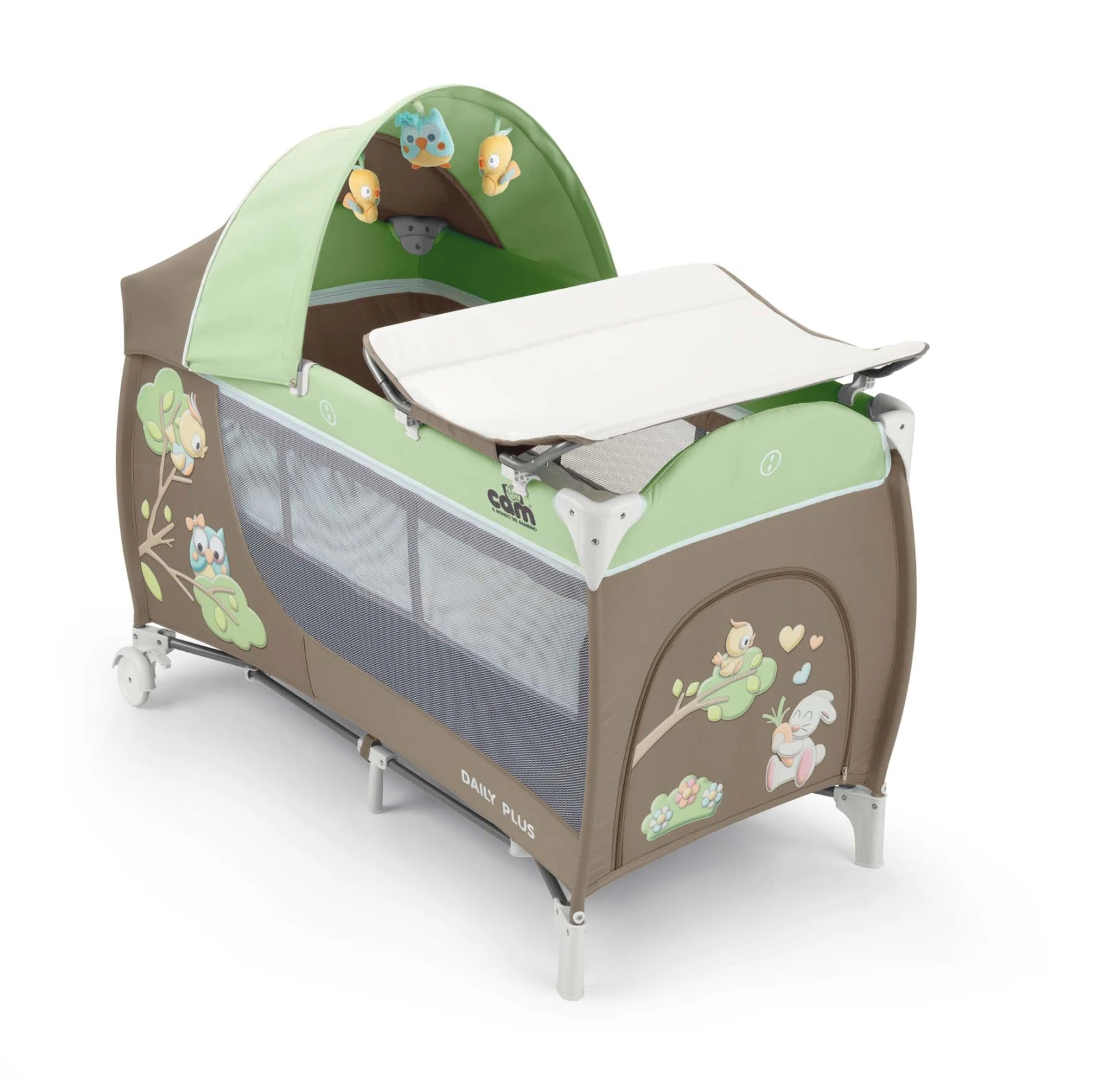 Cestovní postýlka CAM Daily Plus 2016, Col.225 - zeleno-béžová s ptáčky