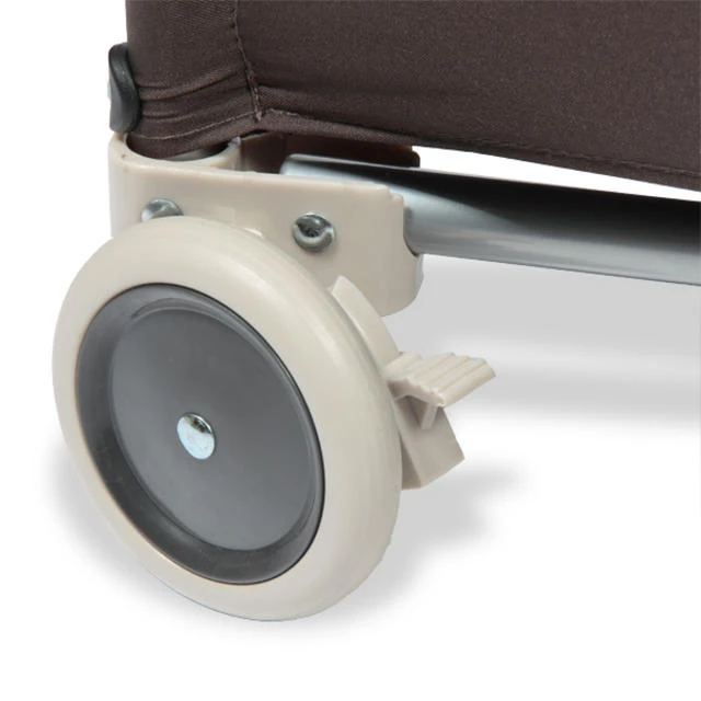 Dále je postýlka vybavena kolečky s brzdou, postraní kapsou a otvíracím čelem.