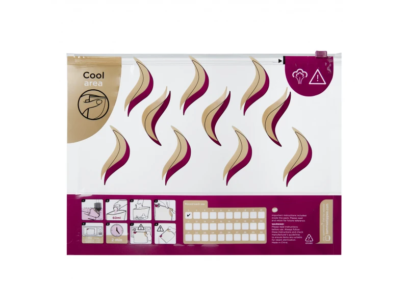 Pouzdro můžete využít pro uložení a sterilizaci odsávačky, kojenecké lahvičky, šidítek apod. Sterilizace párou v mikrovlnné troubě je hotová během 90 sekund. Část pouzdra označená jako "Cool area" je i po skončení sterilizace chladná, aby bylo možné pouzdro uchopit a vyjmout z mikrovlnné trouby bez rizika popálení ruky.