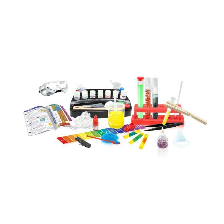 Sada Chemická laboratoř Premium obsahuje: držák na zkumavky, skleněnou míchací tyčinku, skleněnou kádinku, filtrační papír, alobal, balonky, 8 nádobek s chemickými látkami, jedlou sodu, síran měďnatý, kyselinu citronovou, uhličitan sodný, kyselinu vinnou, pyrosiřičitan sodný, hydroxid vápenatý, síran železnatý, pinzetu, nálevku, podnos na pomůcky, zátky do zkumavek, tekuté červené barvivo, oboustrannou lžičku, zinek, univerzální indikátorové papírky (lakmusové papírky), kartáček na zkumavky, zkumavky a stojan na zkumavky, lihový kahan, pipety, ochranné brýle, česká a slovenská pravidla.