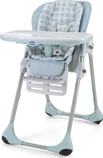Jídelní židle Polly nabízí: sedátko s dvojím, odnímatelným polstrováním, polohovatelnou opěrku zad nastavitelnou do tří pozic, velký servírovací pultík, který je ideální jak pro servírování jídla tak pro hraní a může být nastaven do tří pozic, sedátkomůže být nastaveno do sedmi různých výšek, odnímatelné polstrování židličky - malé/větší dítě, nastavitelná podpěra nohou do tří poloh, pětibodový bezpečnostní pás, praktický přídavný tác umístěný na rámu židličky mimo dosah dítěte, kolečka vzadu jsou otočná s brzdami