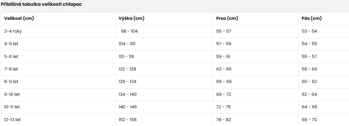 | Velikosti | 2 - 3 roky / 3 - 4 roky / 5 - 6 let / 6 - 7 let / 4 - 5 let |