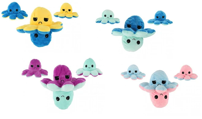Jedna strana plyšové chobotnice se stále usmívá, ale pokud ji převrátíte naruby, vykoukne na vás mračící se chobotnička.