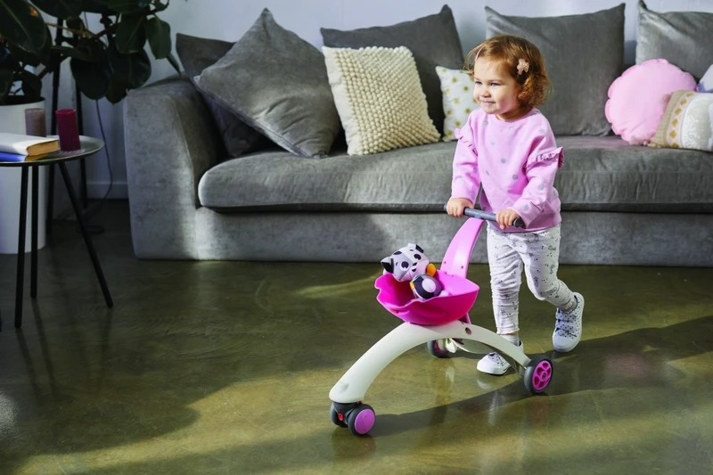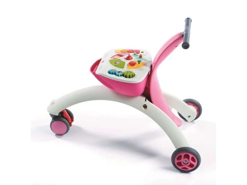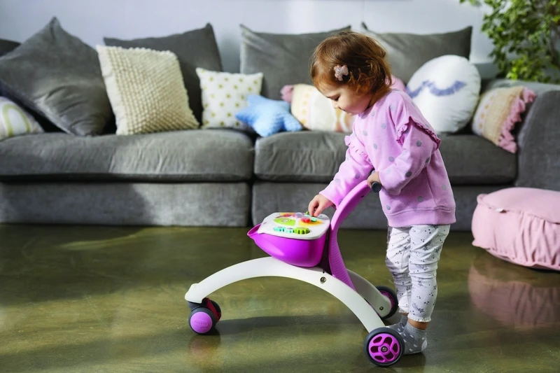 Dítěti, které již umí chodit bez opory, chodítko snadno upravíte na odrážedlo, se kterým bude zažívat radost z nového způsobu pohybu na jeho prvním dopravním prostředku! Pro zkušené jezdce je možné nastavit otáčení předních koleček pro lepší manévrovatelnost.