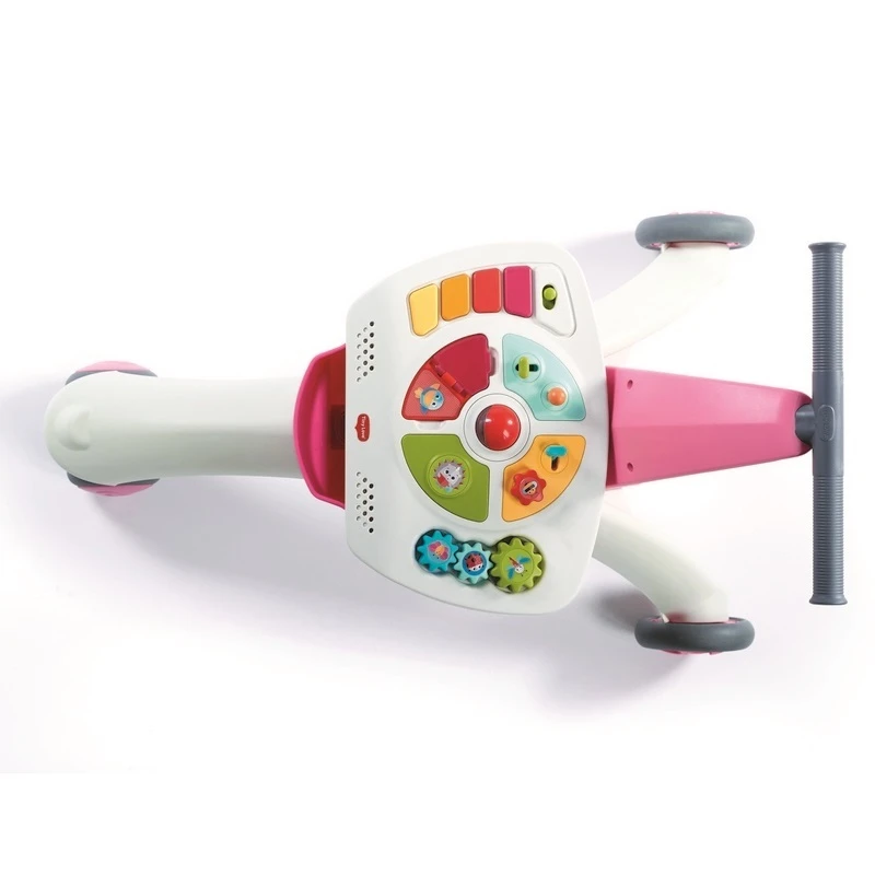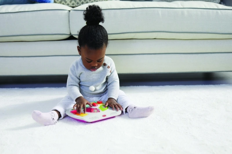 Součástí chodítka je odnímatelný elektronický hrací pult s množstvím různorodých aktivit, melodií a zvuků, které dítě lákají ke zkoumání při sezení na hrací dece.