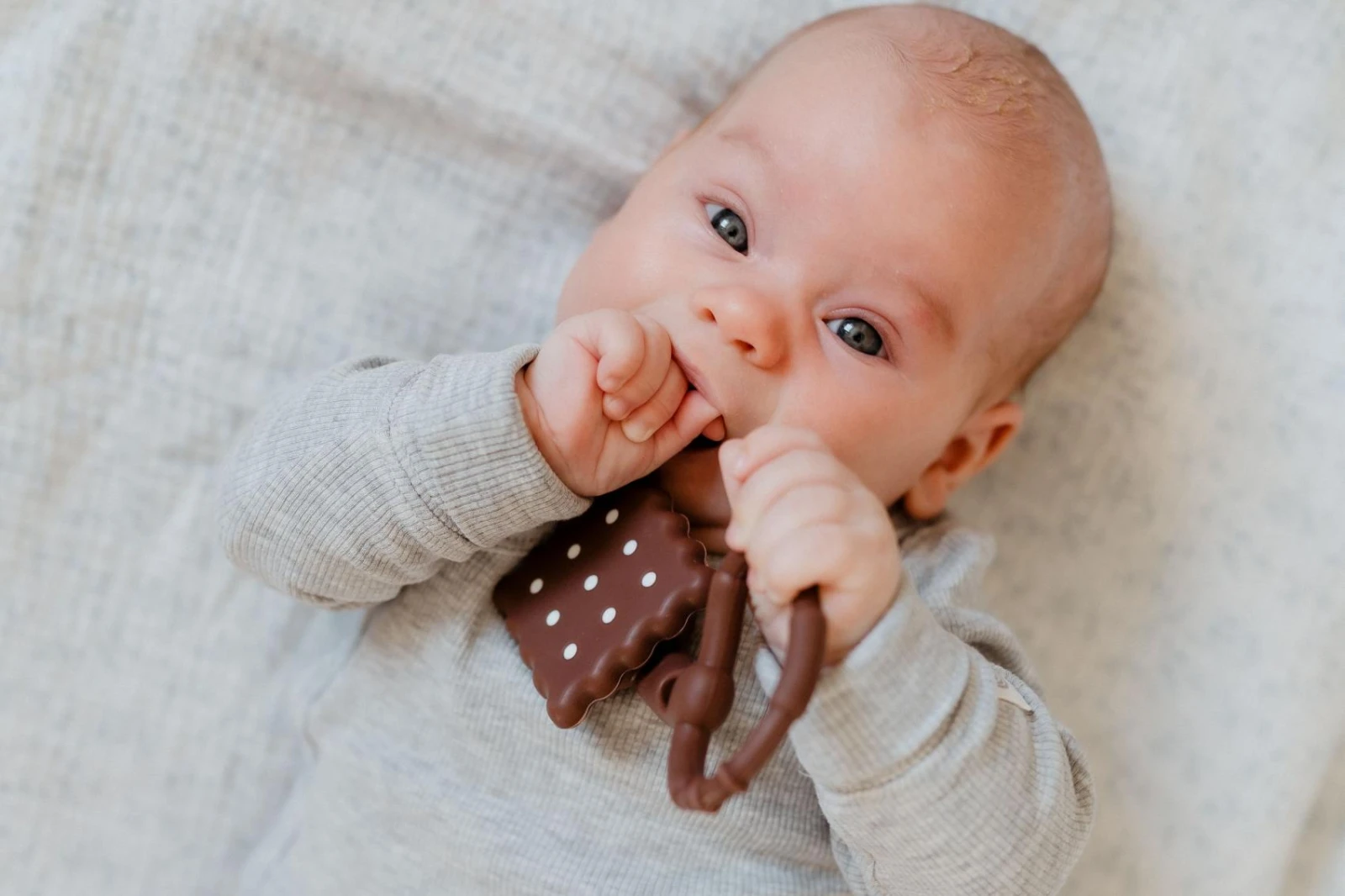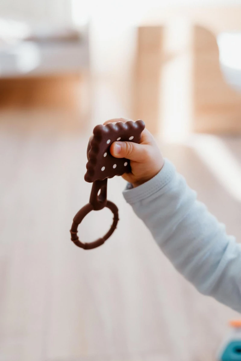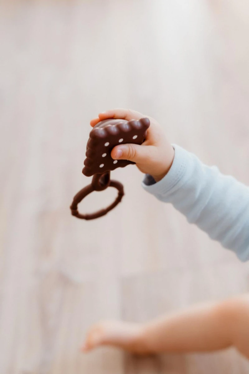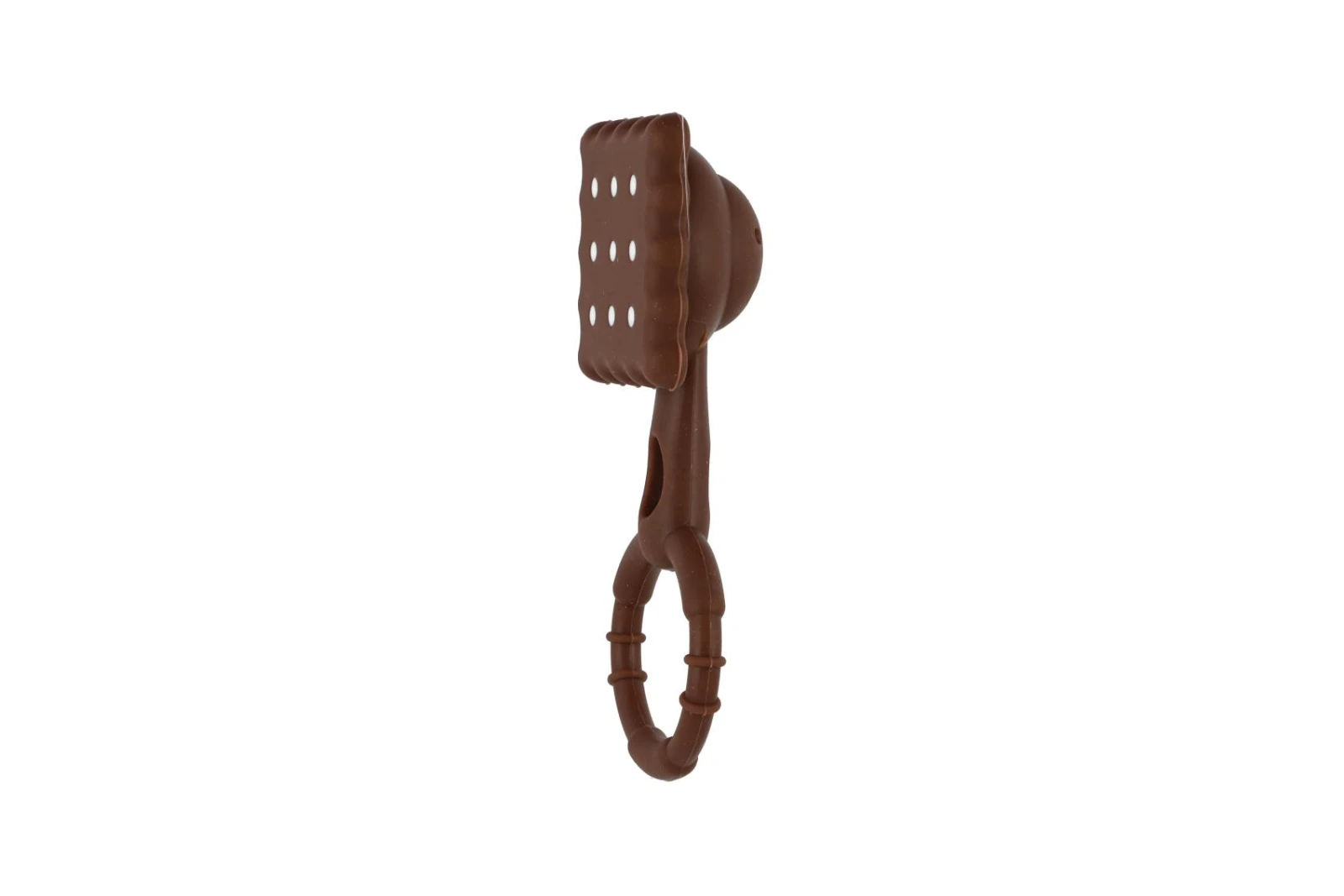 Originální design sušenky zaujme na první pohled a díky praktickému kroužku se hračka snadno drží v malých ručičkách. Měkký silikonový materiál je příjemný na dotek a vhodný i při prořezávání prvních zoubků. Lehká konstrukce podporuje samostatné uchopení a rozvoj jemné motoriky. Jemné chrastění stimuluje sluchové vnímání dítěte.