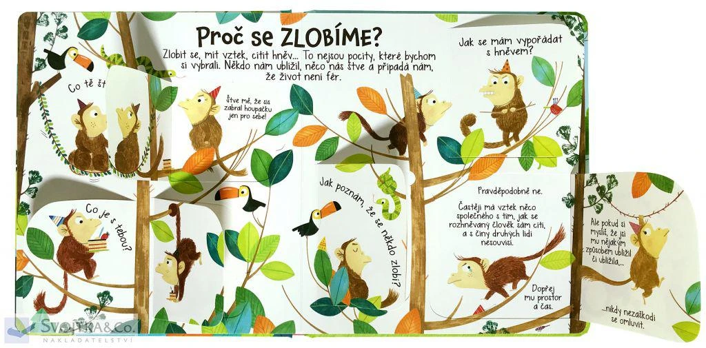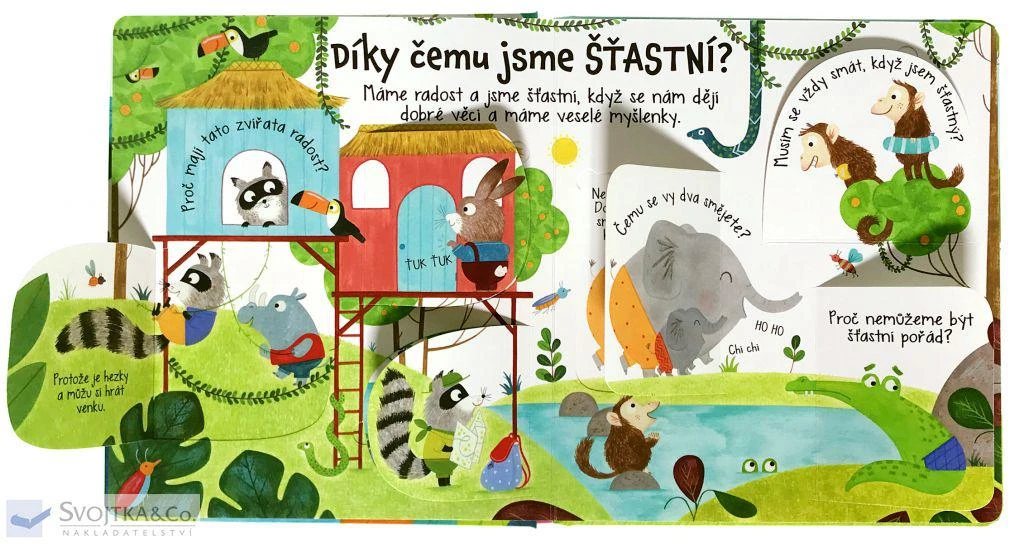 Pocity jsou to, co cítíme uvnitř těla a v mozku, když se nám dějí dobré nebo špatné věci. Děti se odjakživa ptají, zda jsou pocity "naše", nebo zda nám tak úplně nepatří, když jako ve vlnách přicházejí a zase odcházejí. Jinak řečeno: co to pocity jsou a kde se berou? Na tyto otázky nemají dospělí vždy rychlou a jasnou odpověď. V této mile ilustrované knížce najdou děti i jejich rodiče odpovědi na nejčastější otázky o pocitech. Proč jsme šťastní? Proč se zlobíme? Z čeho máme strach? Je v pořádku chtít být chvíli sám? Jak se s nežádoucími pocity vypořádat? Odpovědi pod odklápěcími okénky a sympatická zvířata v ilustracích dětem pomohou lépe pochopit komplikovaný svět emocí.