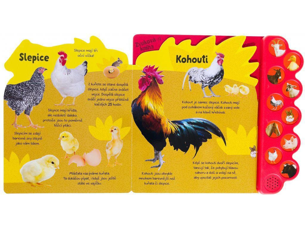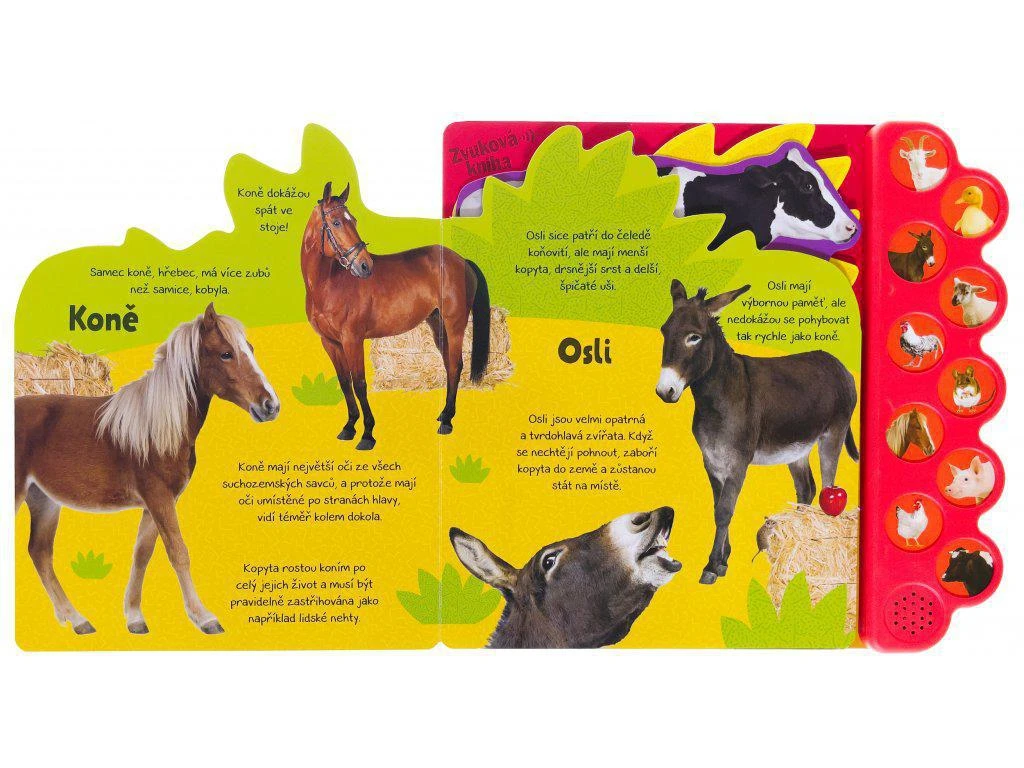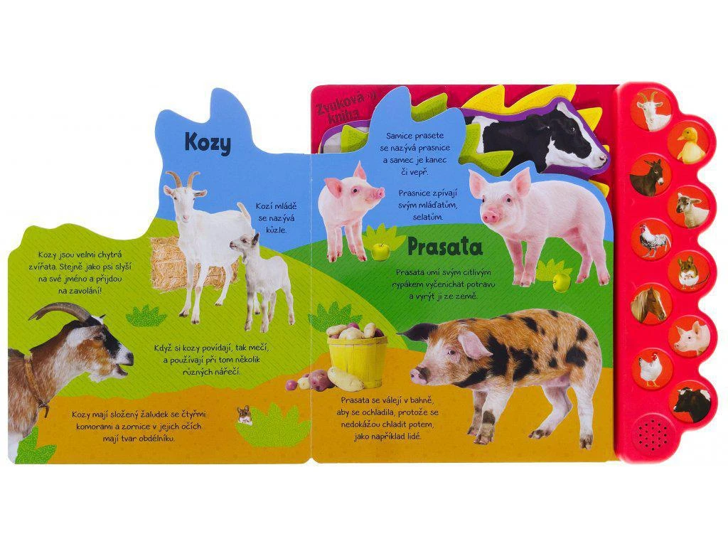 Navštivte farmu plnou úžasných zvířat. Tato zvuková kniha obsahuje mnoho zajímavých informací o různých hospodářských zvířatech. Víš, co jedí krávy? Proč se prasata tak ráda válejí v blátě? A jak často slepice snášejí vejce? Odpovědi na tyto a další otázky naleznete na stránkách této knihy. Zvuková kniha je doplněna realistickými fotografiemi na výrazně barevných stránkách a doprovází ji 10 zvuků zvířat. Zaposlouchejte se do chrochtání, mečení a kokrhání a zjistěte všemožná fakta o těchto užitečných hospodářských zvířatech.