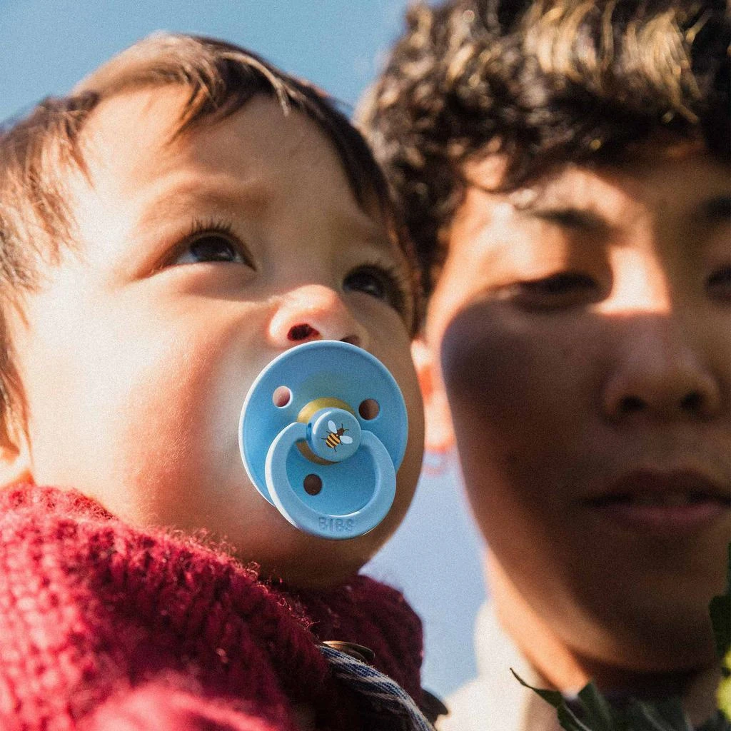 BIBS dobývají celý svět. Jednoduché a stylové. Sací část je vyrobena ze 100% přírodního kaučuku, který je mimořádně pružný a měkký zároveň, odolný vůči vytvoření trhlin a odštěpení malých kousků. Dudlík je navržen tak, aby nedráždil citlivou pokožku miminka. Kulatý kroužek s větracími otvory má klenutý tvar, téměř vůbec se nedotýká pokožky kolem úst, ta proto zůstává klidná, bez otisků a podráždění. Díky měkoučkému kaučuku a zabudovanému vzduchovému ventilu dítě dudlík snadno stlačuje a formuje v ústech, čímž je zachován přirozený vývoj patra, dásní a zoubků dětí.