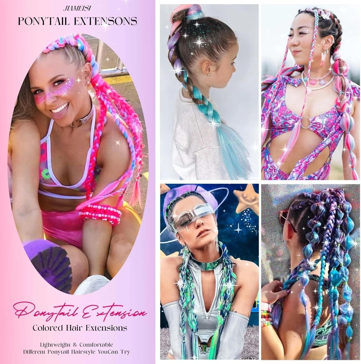 Copánek je vyroben z jemných syntetických vláken, která působí přirozeně a zároveň jsou lehká a příjemná na nošení. Gumička je pevně uchycena, takže se snadno nasazuje a dobře drží i při aktivním pohybu. Vlákna mají jemný lesk a často obsahují barevné akcenty – pastelové nebo duhové odstíny, které zvýrazní hravý a kouzelný charakter doplňku.
