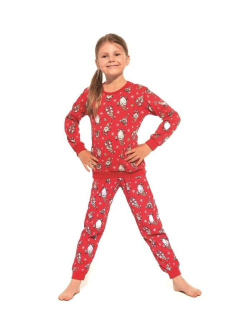 Dívčí pyžamo s vánočním motivem Cornette - tričko s dlouhým rukávem, dlouhé kalhoty, v pase guma, rukávy a kalhoty ukončené lemem.