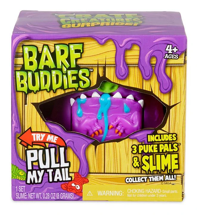 5 jedinečných postav, z nichž každá má vlastní příslušenství a sliz. Nabíjejte Barf Buddies slizem a dalším příslušenstvím, abyste jím pobavili své přátelé a rodinu znovu a znovu.