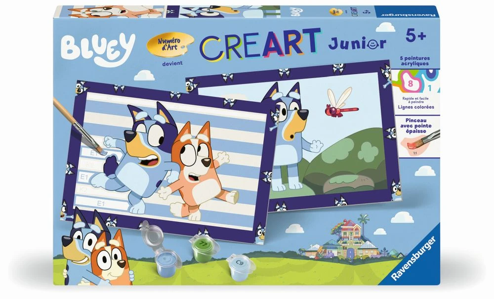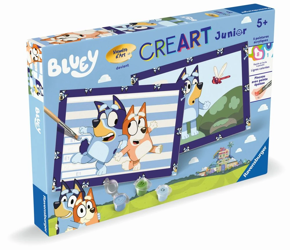 CreArt - to je kreativní zábava doslova pro každého. Staňte se na chvíli profesionálním malířem a namalujte si svůj vlastní obraz. Tento roztomilý motiv z oblíbeného seriálu Bluey rozzáří každou zeď.