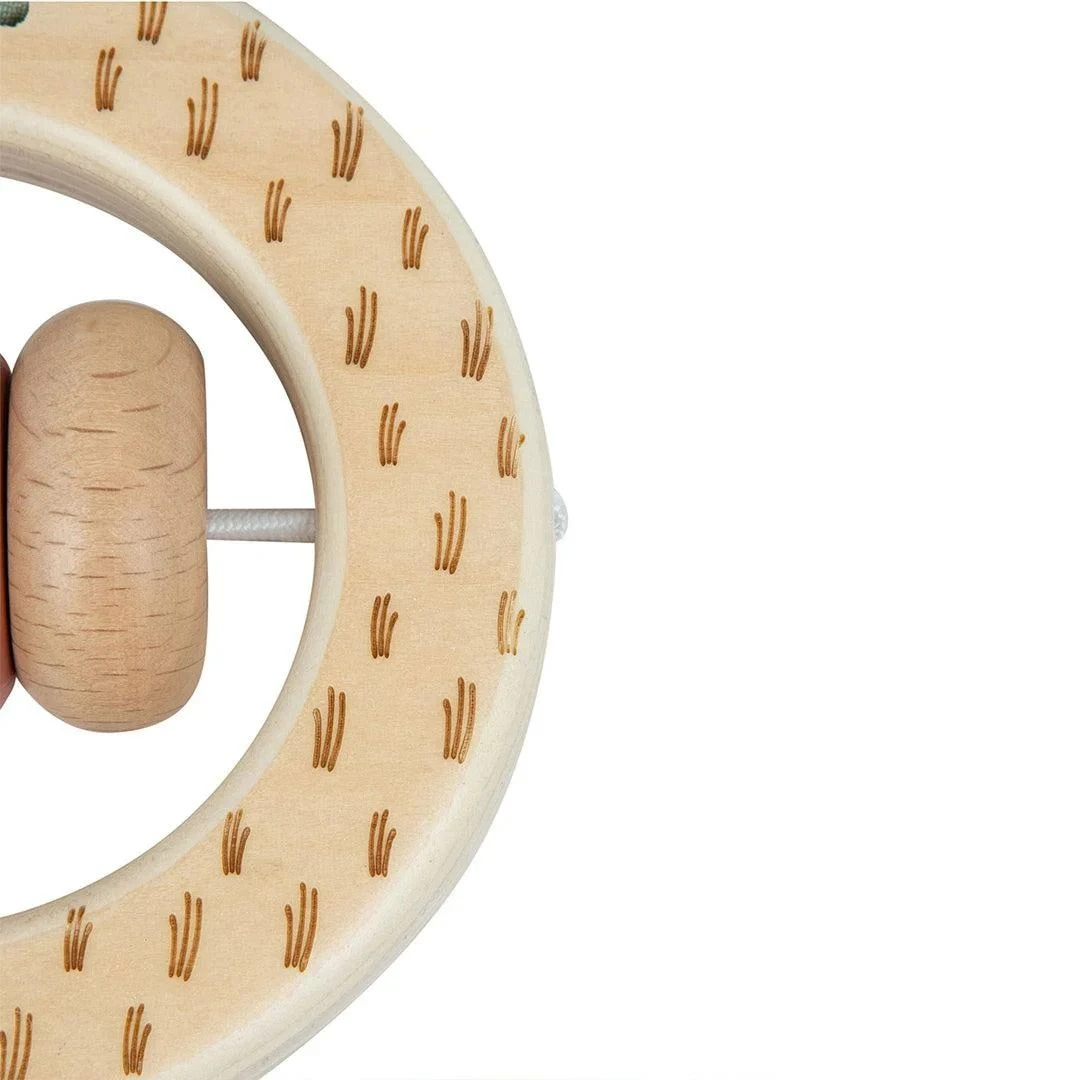 Sadu tvoří dřevěné chrastítko s barevnými korálky a bavlněnými lístky a muchláček v podobě králíčka z měkké, hebké bavlny. Každá ze dvou hraček rozvíjí jiné oblasti od emocí a smyslů až po poznávání a motoriku.