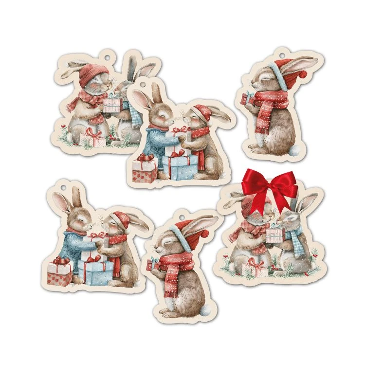 Balení obsahuje 3 krásné motivy vánočních zajíčků vždy po 2 kusech.